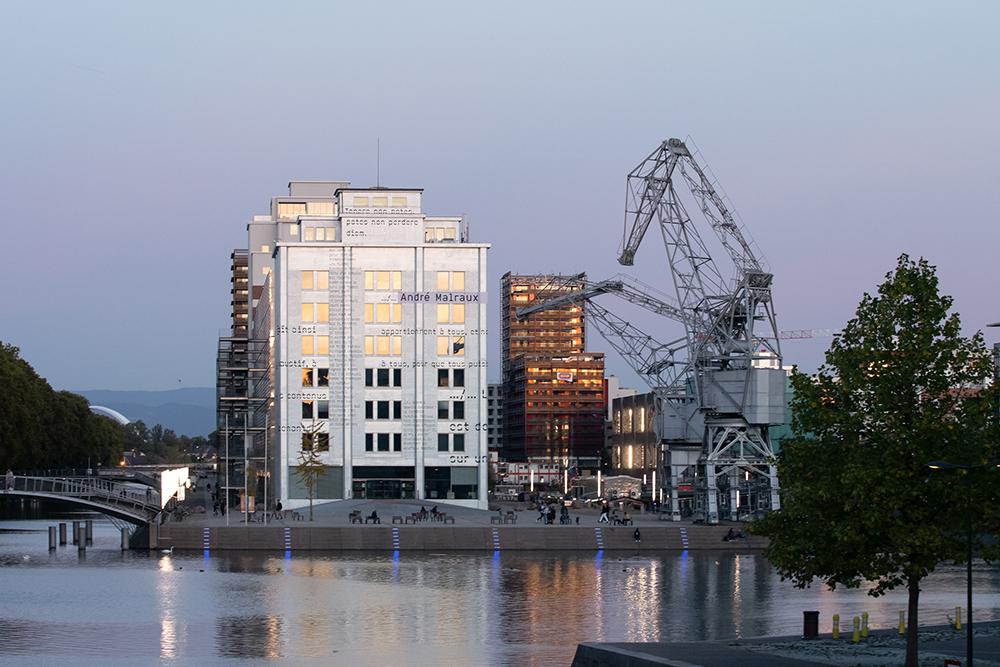 La Médiathèque André Malraux est implantée sur le môle Seegmuller, origine du port de Strasbourg. Elle occupe un ancien bâtiment de l'armement construit dans les années 1930 et désaffecté en 2000. Le projet de réhabilitation a été l'œuvre des architectes Jean-Marc Ibos et Myrto Vitart. Les grues de manutention ont été conservées et les autres bâtiments de l'ancien Armement Seegmuller ont également été réhabilités. Cet imposant silo symbolise une part importante de l’architecture industrielle du XXe siècle.